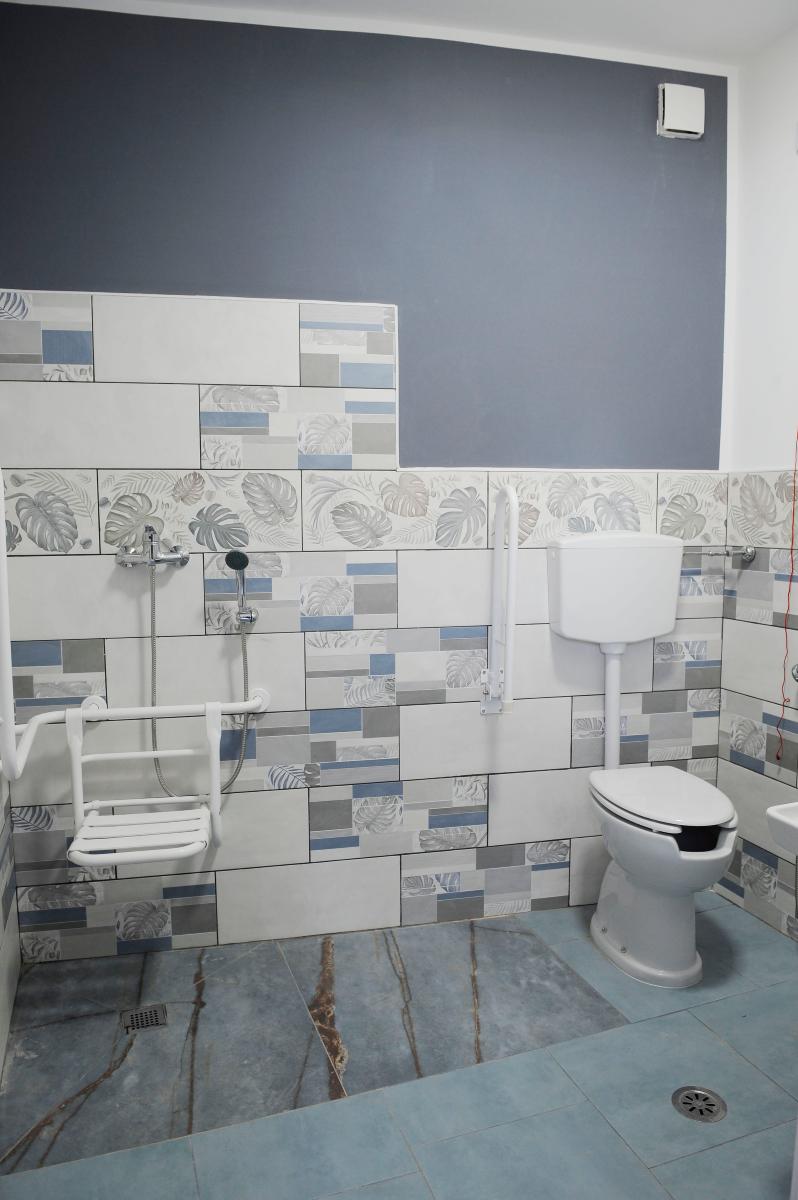 Our accessible double room with a shower is designed to offer maximum comfort and accessibility. Featuring an elegant private bathroom with a walk-in shower and safety grab bars, it ensures a barrier-free stay.