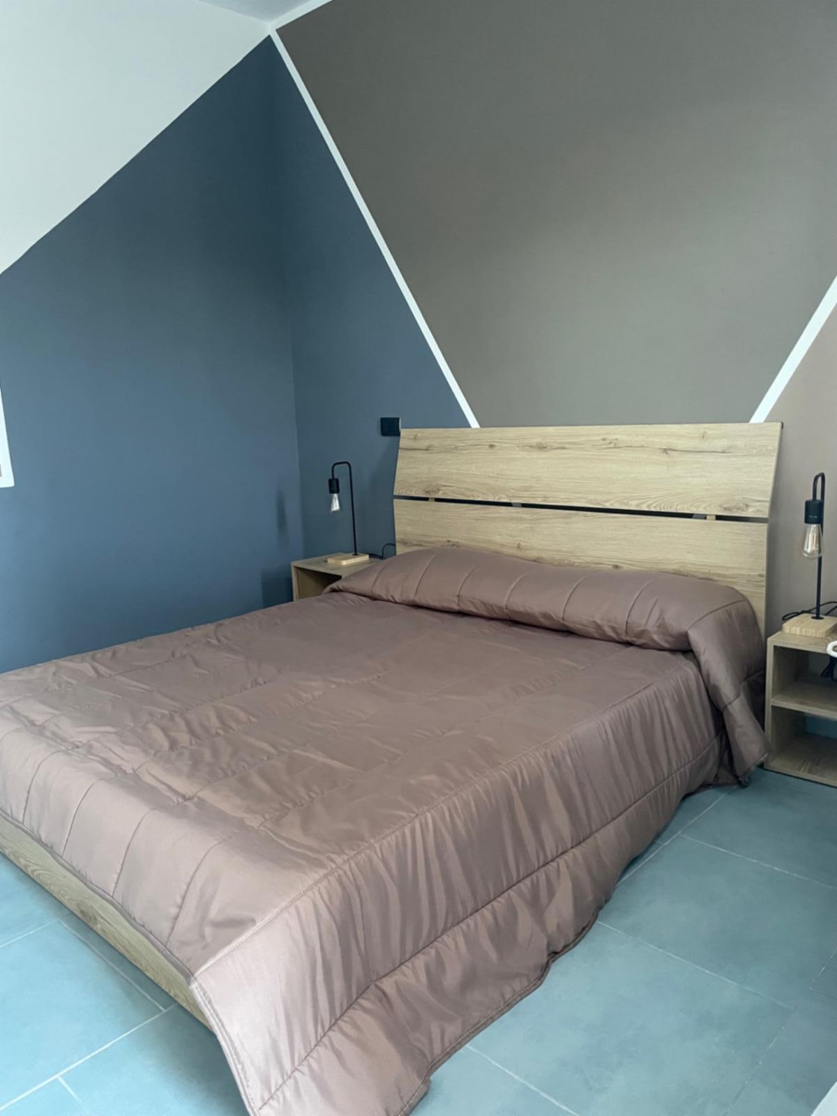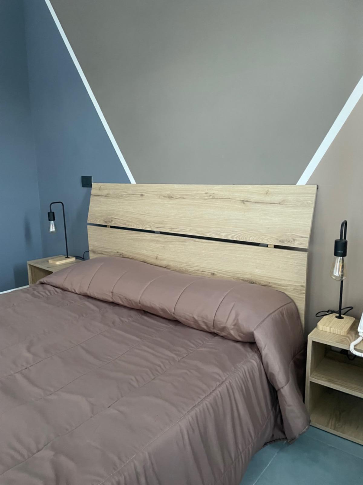 The room includes a functional desk with a chair, a spacious wardrobe to store your belongings, and two bedside tables for added convenience.